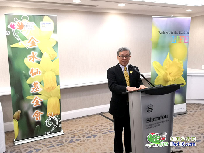 加拿大防癌协会安省行政总裁 Mr. Jeff Cornett 称金水仙晚宴有着悠久的历史,以优秀的传统来支持加拿大防癌协会肩负的使命及重任。他不仅感谢金水仙基金会董事会同人、义工、志愿者,还补充说,21 年来金水仙晚宴将社区人士聚集一起来庆祝加拿大居民能够过着更健康生活,拥有更长寿的生命。