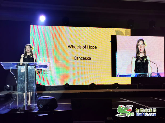 晚宴共同主席李秀梅女士介绍,晚宴会向加拿大防癌协会捐赠一辆价值六万加元客货两用车(van),目的为支持“希望之轮运送计划Wheel Of Hope”。此车辆专责用于接送在家中癌症患者往返不同专科医院进行各种治疗,解决并减少因困难找到适合运输交通工具的困扰。此部客货两用车,具备各种方便舒适条件,全程并不收取费用,由热诚经验细心的义务司机担任义务接送,务求达到完满的效果。现正需要大量义务司机,希望有意者加入此义工行列。