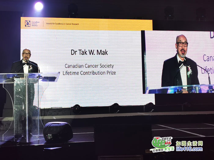 另一特色项目是加拿大防癌协会行政总裁Andrea Seale亦专程由温哥华莅临晚宴颁发“终身成就奖 Lifetime Achievement Prize”给予Dr. Tak Mak(麦德华博士)表扬他努力于癌病研究及卓越的成就。