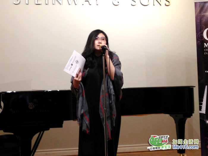 加拿大生命教育成长协会会长、LEGAC国际艺术文化交流中心主席、全球杰出华人艺术家协会加拿大分会理事、全球杰出少年演奏家选拔赛执行总监Tina Tao向各界来宾介绍音乐节及相关协会未来的发展目标