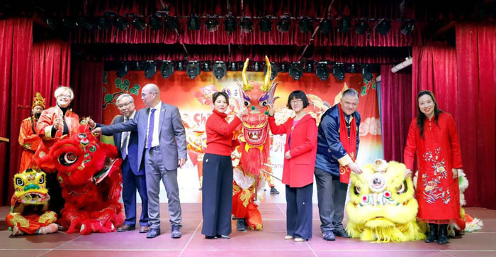 下午三时,轻松而隆重的开幕礼正式举行,随着幕布徐徐拉开,所有嘉宾、金龙及双狮在全场观众热烈掌声中与大众见面,喜庆的景象吸引现场观众共拍美景。嘉宾拜年后,龙狮共舞,大派红包,大人小孩乐融融。