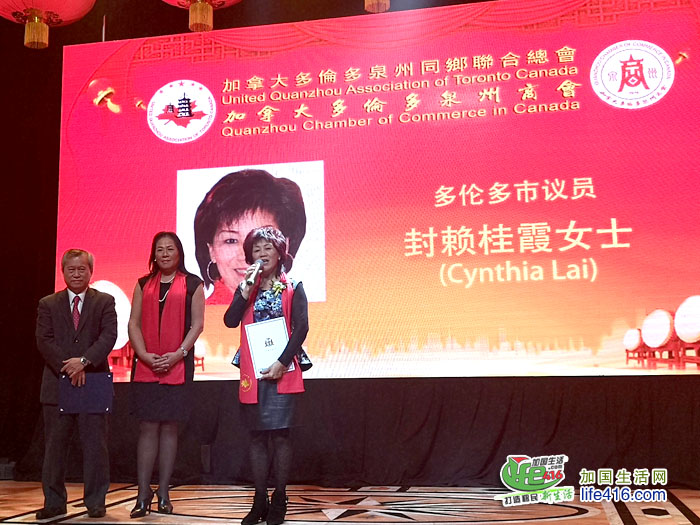 约克区区议员李国贤、旺市市议员杨士渟、多伦多市议员封赖桂霞分别致辞并颁发贺信