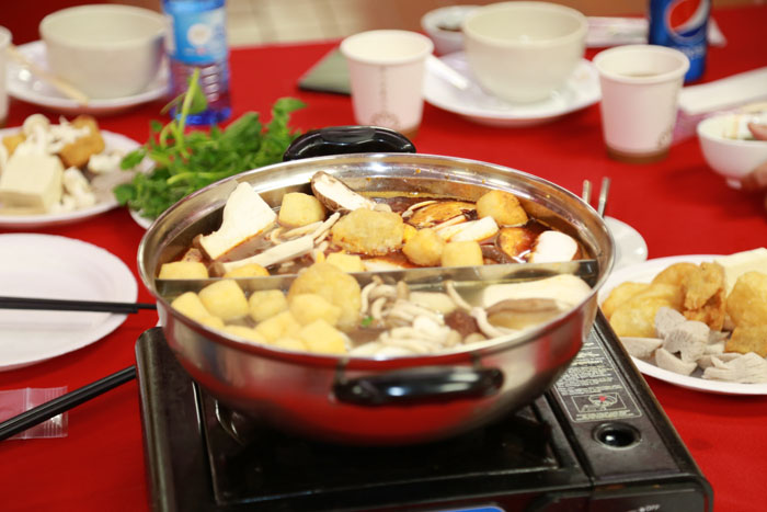 晚宴中,大家品尝着湛山的素食火锅,热气腾腾,就像回到自己的家一样,度过了一个温馨而又有难忘的夜晚。