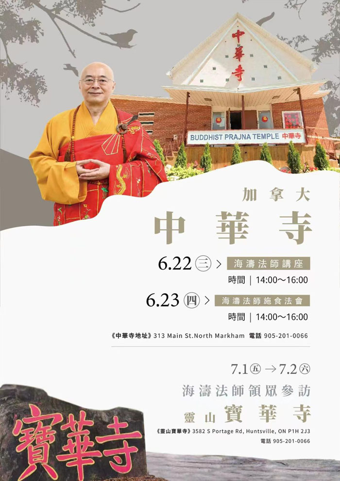 6月22日星期三下午14:00 — 16:00 海涛法师佛教讲座