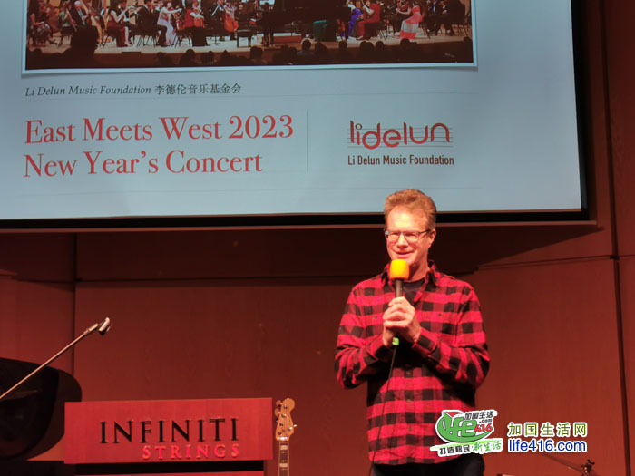 李德伦音乐基金理事长李燕介绍《2023中西汇粹新年音乐会》,这次音乐会也是全球欢乐春节系列活动之一。