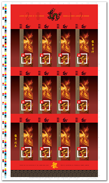 加拿大邮务公司发言人Keisha McIntosh-Siung表示,加拿大曾于2000年发行过一套龙年生肖邮票。2012年发行的龙年邮票,是加拿大邮政局设计并发行的第二轮12生肖邮票中的第4套生肖邮票。加拿大邮政局于1997年首次发行农历新年生肖邮票系列(Lunar Year),系列之首是1997年的牛年邮票,系列之末2008年的鼠年邮票。