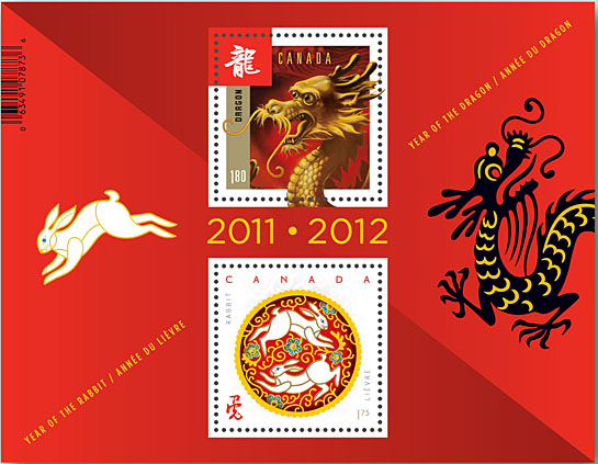 【加国生活网专稿】2012年是中国农历壬辰年,按12生肖来算是龙年。为庆祝壬辰龙年,加拿大邮政局(Canada Post)将于2012年1月10日星期二正式发行龙年纪念生肖邮票系列,包括首日封、纪念封、国内及国际邮票等。