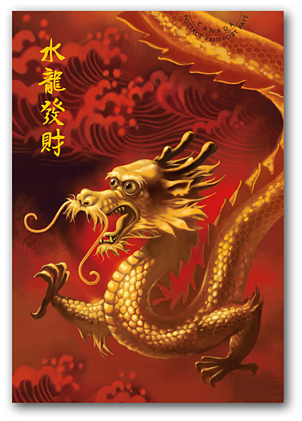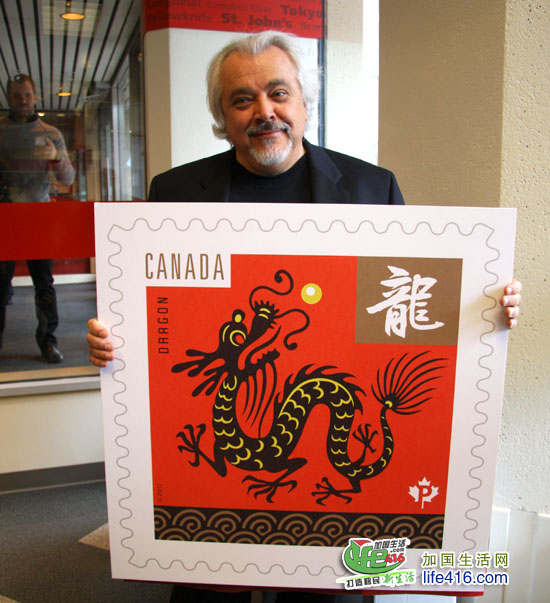 曾设计过2004年的加拿大生肖猴票的加拿大平面设计师Louise Fishauf 又一次担任起为为加拿大邮政总局设计龙票的“重任”。