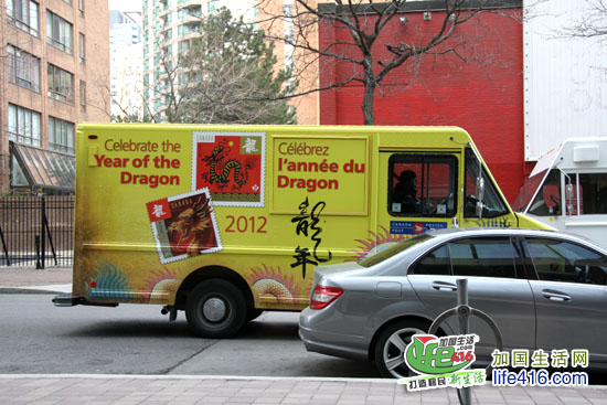 加拿大邮局为了配合龙年邮票的发行以及庆祝中国农历新年,专门在多伦多、温哥华和渥太华三地将部分邮车装饰一新,让更多加拿大人了解中国文化。