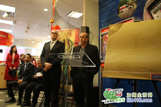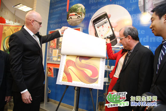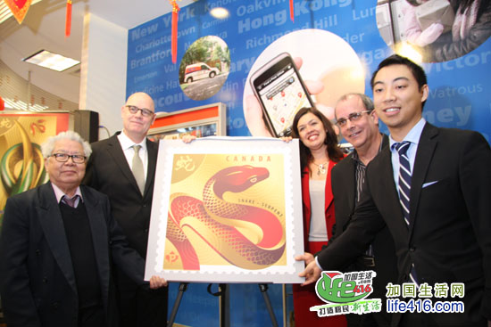 【加国生活网专访】加拿大邮局Canada Post Office 于2013年1月8日正式发行2013年蛇年生肖邮票,并于当日在Toronto Atrium on the Bay 邮局举行蛇年生肖邮票的首发仪式。