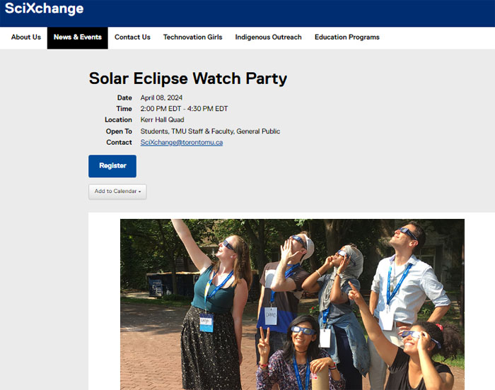 2、Toronto Metropolitan University —— SciXchange的“日食观察派对”