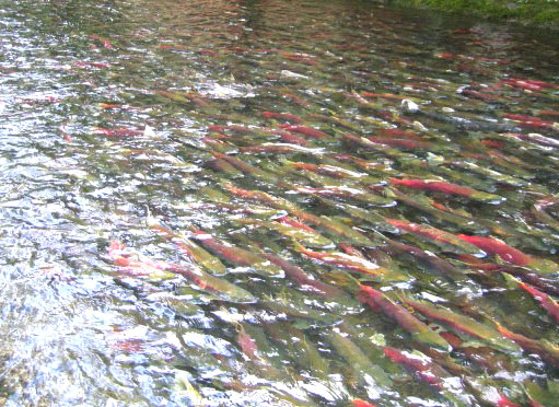 根据小编这几年看三文鱼的经验,如果河水太浅的话,会不利于三文鱼回游,因此三文鱼会在安大略湖等着下大雨呢。一般来说,回游的时间会在9月底或10月初。但每年的情况不同(是否干旱,是否雨水多),三文鱼回游的时间也会有所不同的。