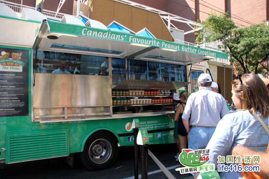 多伦多街头艺人节上除了有各种美食摊位外,还有一些著名食品公司的餐车免费为大家提供美食,借此活动为公司产品宣传造势……