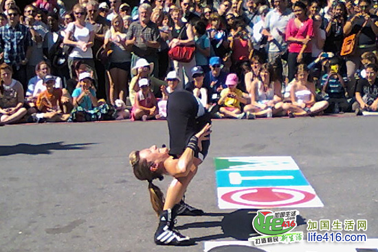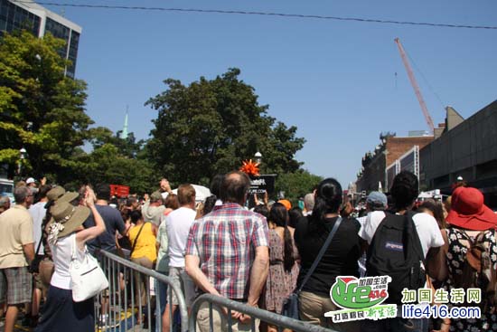 在St. Lawrence Market 附近的各条街道上,到处可以看到这样人山人海的人群,时不时地发出阵阵掌声和阵阵笑声……