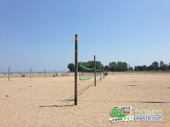 WOODBINE的湖边很是热闹,游艇、音乐(游艇上的人放的)、玩沙的孩子、肌肉帅哥、比基尼美女、烫脚的沙滩、打沙滩排球的人们、湛蓝的天空,这就是加拿大的生活场景之一……你知道吗,Woodbine这边的沙滩还是著名的“蓝旗沙滩”呢(北美有专门的蓝旗评审标准(The Blue Flag program),该标准是国际公认的游泳海滩或沙滩的生态标准,用来判断哪些海滩或沙滩满足最高要求水质的要求,适合人类在海边或湖边休闲。因此夏天如果想去湖边游泳,一定要去有蓝旗标识的沙滩哟)。有关“蓝旗沙滩”的详情请点击这里。
