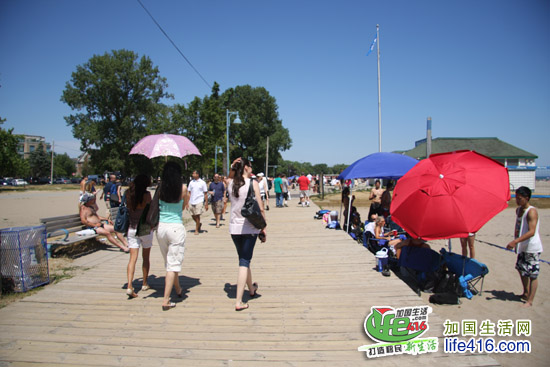沙滩区位于Queen St. East以南,东起Victoria Park,西至Coxwell,距离市中心仅 15 分钟车程。沙滩区除了有连绵的沙滩外,还有长达三公里的木板步行道(Boardwalk),每天傍晚或是周末的时候,那里可是热闹非凡,溜汗冰的、轮滑的、溜狗的、推婴儿车的、跑步的、携手散步的、打沙滩排球的、晒日光浴的、在沙滩野餐的比比皆是,再加上一群群海欧在空中飞舞,沙滩区绝对是一处休闲的好去处。