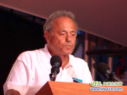 这是当时的多伦多的市长拉士曼(Mel Lastman)在致开幕辞。拉士曼在任期间,深得市民的爱戴,曾经有一年,多伦多经历了一场罕见的大雪暴,拉士曼排除众议,派驻军队进驻多伦多帮助除雪。后来,拉士曼因健康原因宣布卸任,现任市长是苗大伟(David Miller)。