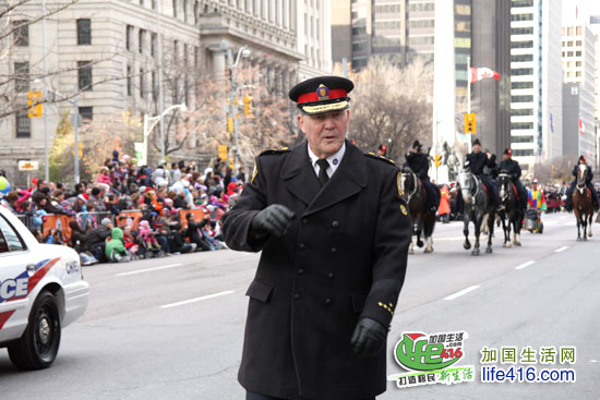 多伦多警察局长(2005-2015)William Blair 来到小编所在的这个区域,他倒是挺nice 地对大家说:“Merry Christmas,圣诞老人就在后面哟……”,不过这表情,粉严肃的。