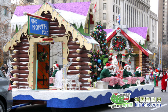 远远开过来的这个花车,门上标着“North Pole”的大牌子,小编还没明白是怎么回事呢,就是感觉这个花车与众不同,比其他的花车都讲究。