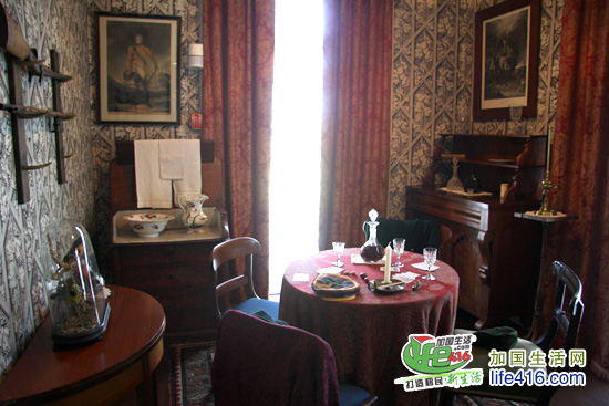 Sir Allan Napier MacNab 居住的Dundurn Castle 建成于1835年,当时用了三年时间花了17万5千建成,共有72多个房间供男爵一家四口及佣人们居住。后来,Hamilton市政府在1900年花了5万块买下了这座豪宅,又花了近3百万元重新装修了这座豪宅,将里面的72个房间恢复成42个房间展示给公众,这些房间都被恢复成1855年的模样,好让公众了解当时这座豪宅的主人的生活状态。这是二楼的个供家庭成员活动的区域,大家可以在这里弹弹琴、聊聊天、织织毛衣什么的。