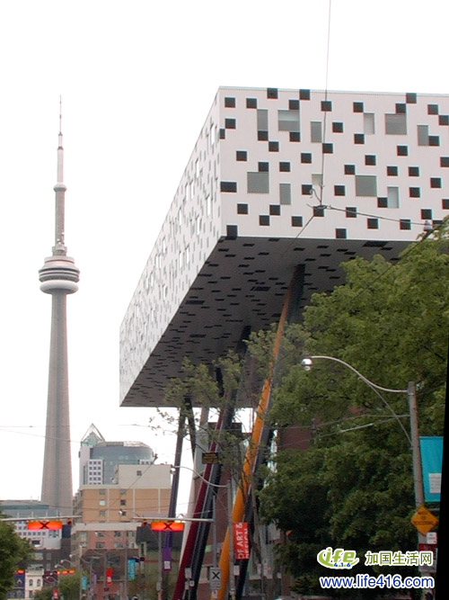 【加国生活网】Ontario College of Art & Design是加拿大最大的一所艺术与设计大学,位于Dundas与University的西南角,沿着University街走一到Dundas街就能看到这座空中楼阁的超凡设施。该座名为 Sharp Centre for Design 的独特10层建筑物是由英国前卫建筑师Will Alsop设计,用了许多明亮颜色的支柱,其独特的设计视角将安省美术设计学院变成了一个巨大的、后现代树屋(tree house),简直就是一个律动着生灵。
