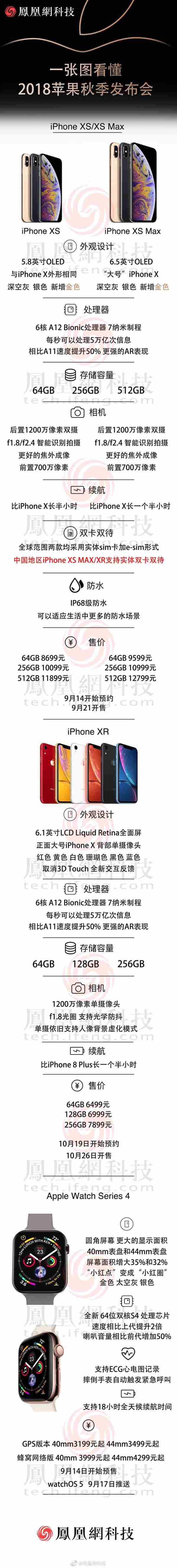 最后就是人们关心的价格问题。iPhone XR将包含64G、128G和256G存储空间,起售价749美元;10月19日预定,10月26日交货。iPhone XS起售价999美元,iPhone XS MAX起售价1099美元。预定时间为9月14日,将于9月21日交货。9月21日上市销售iPhone XS和XS MAX。