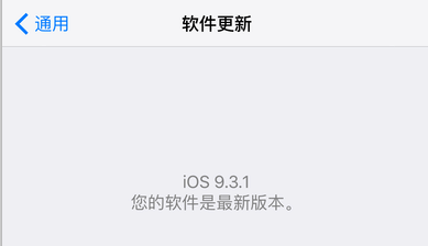 进入到设置→通用→软件更新,当前检测到iOS 9.3.1(也就是未升级之前的版本)已经是最新,而不是iOS 9.3.2,大功告成!以后苹果系统也不会再发更新系统的提示信息了,也不会再自动下载更新软件了