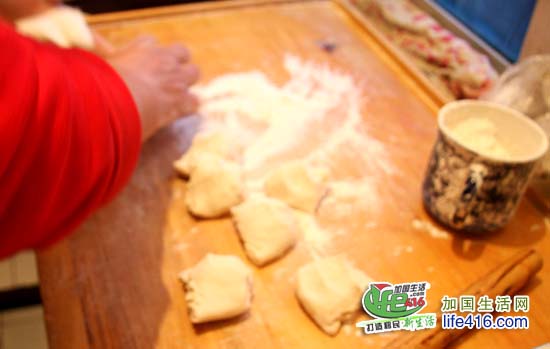 面醒好后,先揉成长条,再用刀切成一段段小面团(婆婆手法厉害,这一段段是用手“切”的)