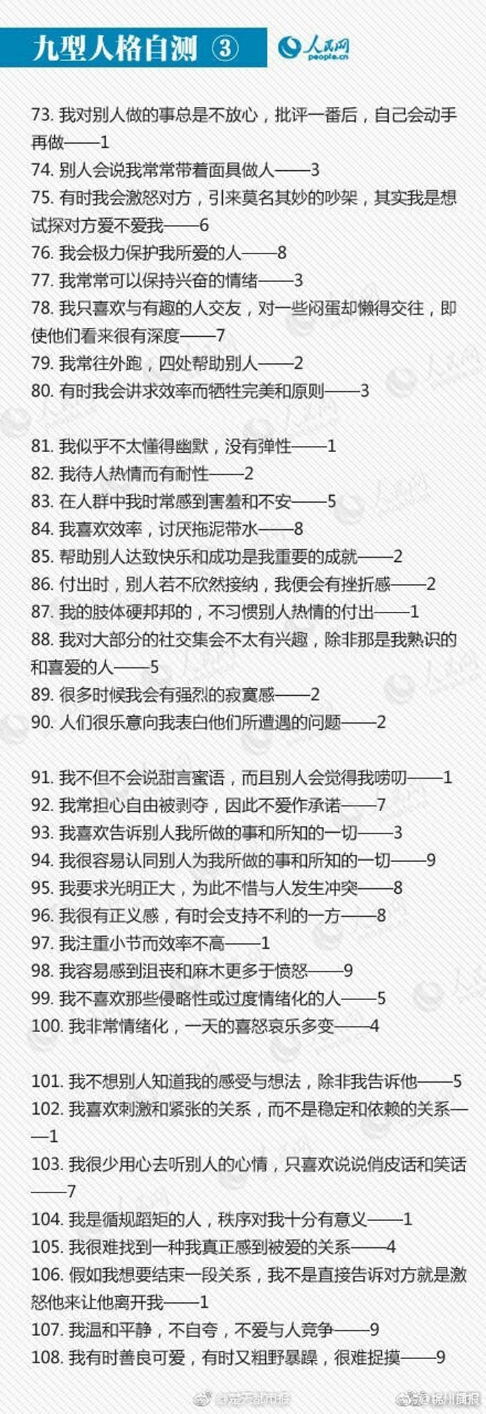 “九型人格”你是哪种 108个自测题走起 更好了解自己 - “九型人格”你是哪种 108个自测题走起3