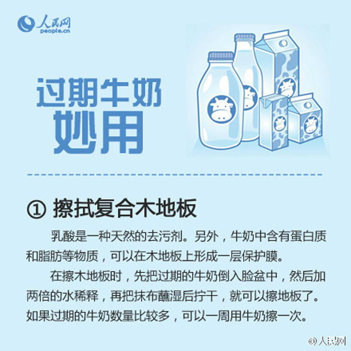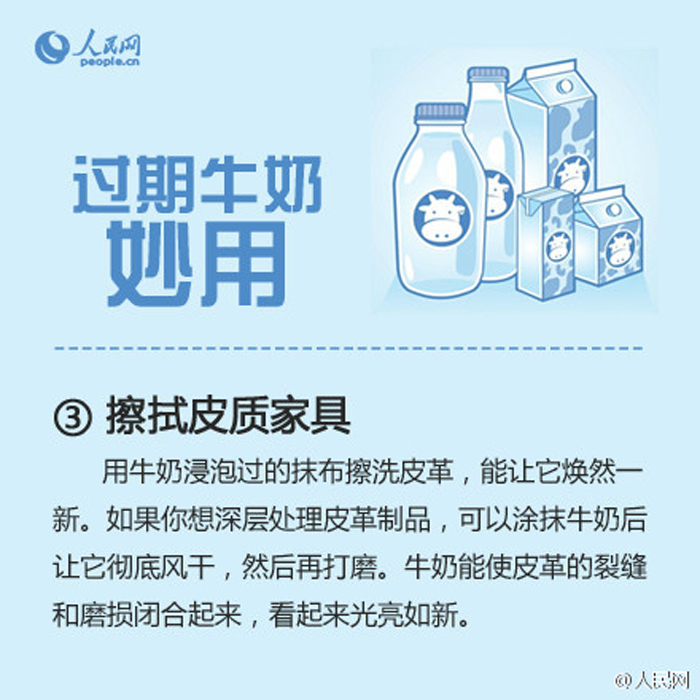 文章来源:养生中国牛奶在开启包装以后,如放置时间过长,就会变质且不能食用,倒了又觉得挺可惜的。别着急扔!过期变质的牛奶依然有利用价值:擦地板、擦皮鞋、去油渍、修复瓷器裂痕、做鱼饵……
