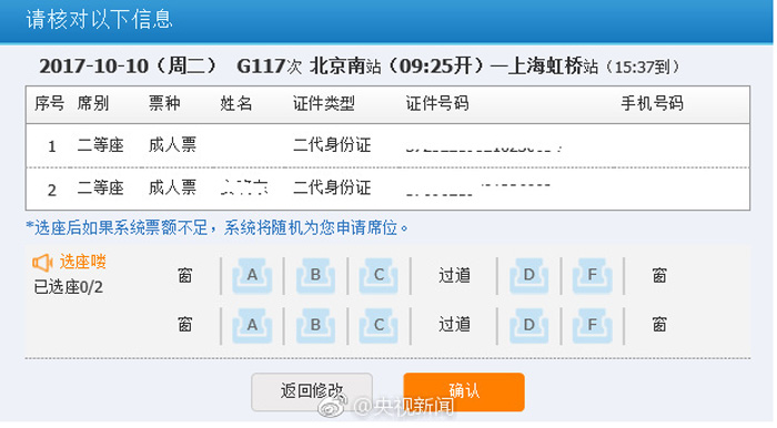 如不选择座席关系,直接点击“确定”,系统将自动为您分配席位。