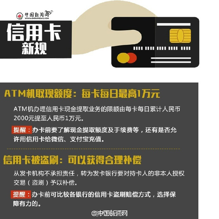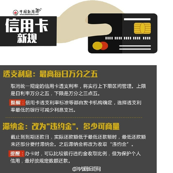 信用卡新规来了,这些变化很多人还不知道:①信用卡被盗刷可获得合理补偿;②透支利息有上限,最高每日万分之五;③免息还款期或超60天…新规2017年1月正式实施。信用卡该怎么选?账单日怎么设置?万一盗刷该咋办?信用卡攻略速速收藏!
