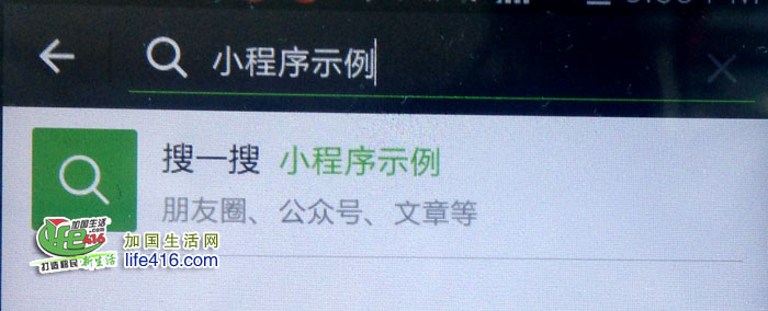 3、微信会搜索出如下图的“小程序示例”,这是微信的一个官方的小程序Demo(演示程序),只要安装了微信6.5.3以上版本的就都可以找到。