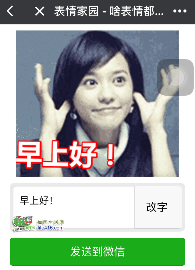 【加国生活网专稿】现在大家都爱在微信群里聊天,有些人爱发表情包,但大部分的表情包都是别人设计好的,你没法修改上面的文字。下面加国生活网小编就教大家如何在微信中发个性十足的或是写有个人名字的动画表情包(也就是说动画图片上的文字可以随意编辑),绝对吸引人的眼球!