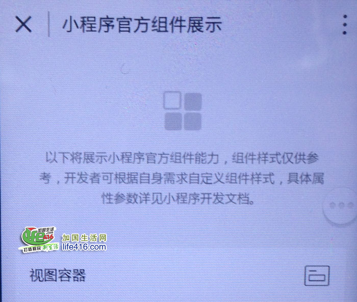 5、如果你找到了第3步的“小程序示例”,点击一下进入,会看到如下图所示的样子,之后再退出这个界面(这一步就是为了激活这个“小程序示例”)