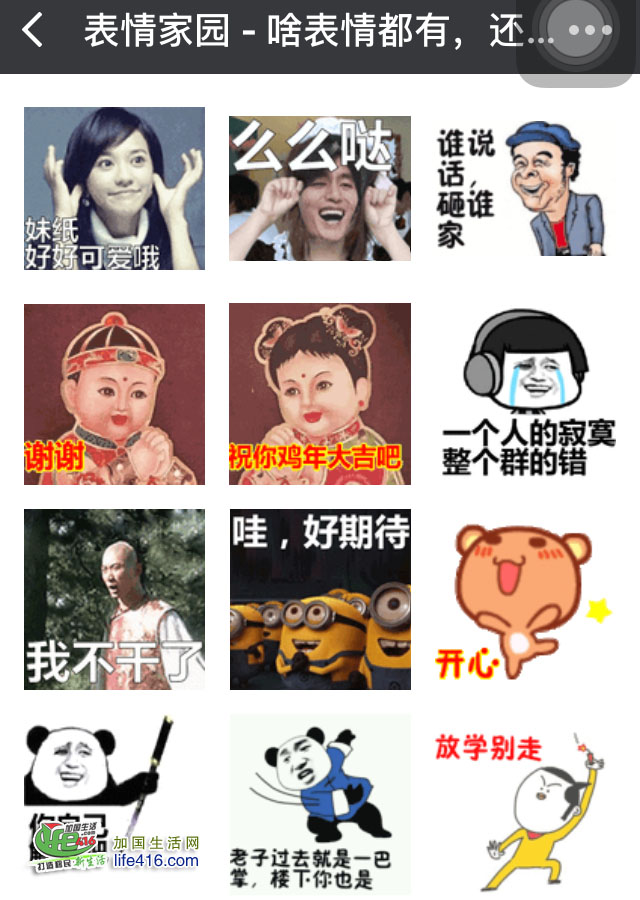 8、点击进入“表情家园”,你会看到如下的各种动画表情,还可以在这些表情上任意修改文字。
