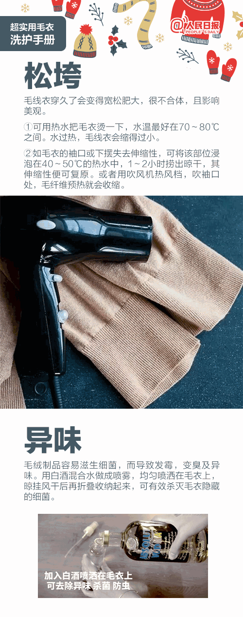 天气越来越冷,又到了美美秀毛衣的时节啦!毛衣洗后就变形?松松垮垮还起球?从箱子里拿出来有异味?穿的时候还起静电?这些问题,你统统不用担心了!换季大作战,就从毛衣开始吧,洗涤、保养、收纳......超实用毛衣洗护手册。简单易操作,速转给身边的毛衣控们!