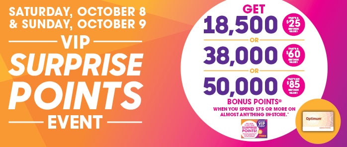 —— 加国生活网小编2016年10月8日最新爆料:ShoppersDrugMart本周末(10月8日至9日)除了有满$75送18500点之外,还有抽奖活动,如果你购物满$75,就有机会抽到送38000点或送5000点的优惠卷。另外,ShoppersDrugMart手机APP也会在手机上推出一系列优惠券,如果你在本月过生日的话,你还会收到一个赠送4000点的优惠券,只要本周购物,就能得到4000点,就算你买$1的东西也送哟,前提是你一定要先绑定Optimum卡到App上、购物前再把这个4000点的优惠coupon下载到你的App上,在收银台刷Shoppers Optimum Card积分的时候,系统会自动加到你的Optimum卡上了。