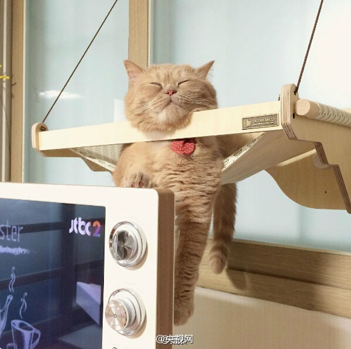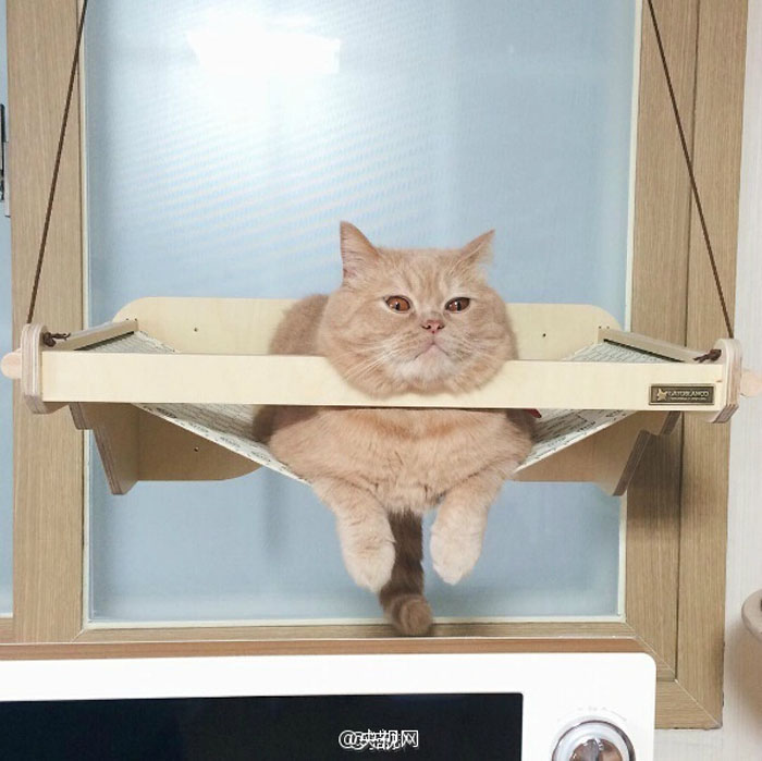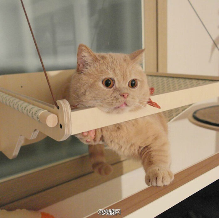 有个主人给家里的喵买了个吊床,没想到他家喵却用它来“上吊”