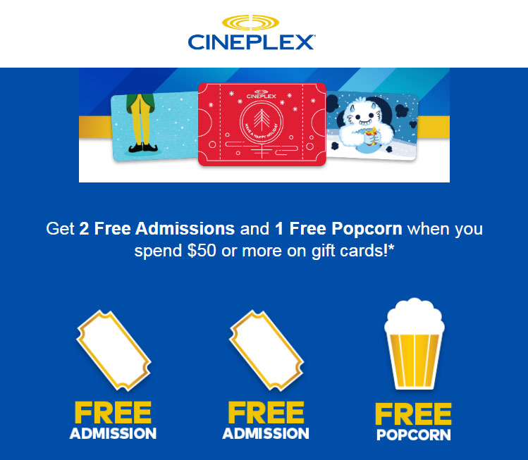 【加国生活网】Cineplex又推出买Gift Card 赠送礼券活动了,不过,现在的问题是安省Cineplex电影院好多地方都不开门,赠送的优惠礼券是要在2021年1月4日至3月31日使用的,如果疫情没有更好地控制地话,电影院开不了,这些礼券也用不上,是吧。反正大家自己掂量着看吧,呵呵。详情:https://www.cineplex.com