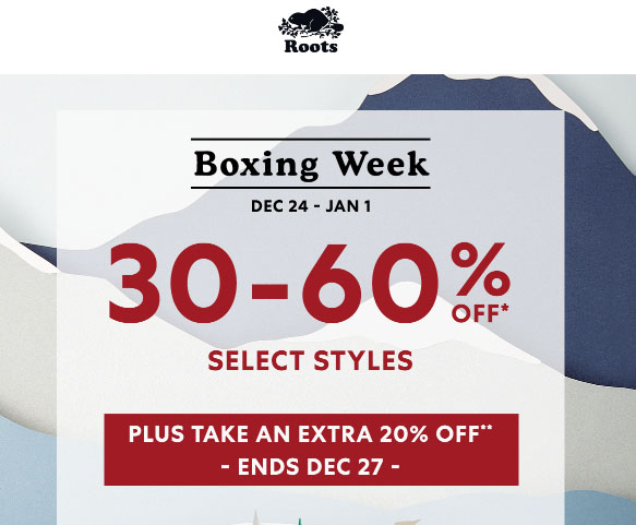 Roots在今年的BOXING DAY貌似要大出血啊,有些款式竟然会打折60% OFF,这可是以往都没有的折扣: