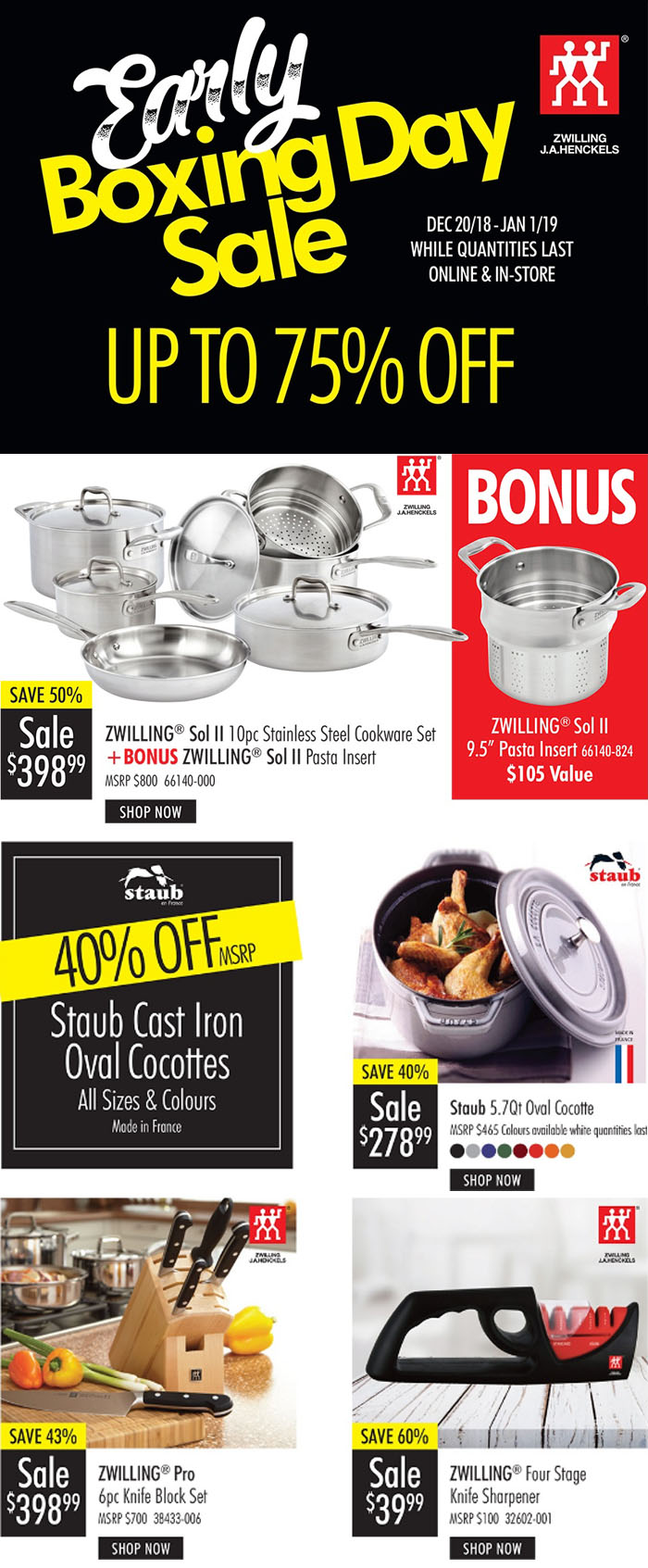 双立人已经提前进入Boxing Day促销,快看还有哪些产品在打折:https://www.zwilling.ca