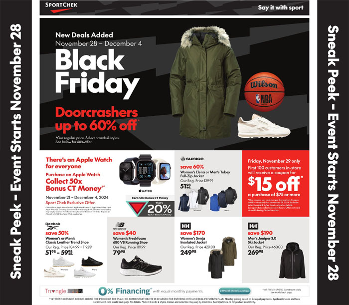 【加国生活网】Sport Chek的黑五促销提前一周举行,11月28日到12月4日期间还会新增一些促销,从冬季装备到运动必需品应有尽有。目前能找到的优惠是该店在Nike、Adidas、Under Armour和Reebok等品牌上有up to 40% off的优惠。11月28日当天一开门有些商品甚至还有doorcrashers优惠,up to 60% off,数量有限。更多优惠请点击这里查询