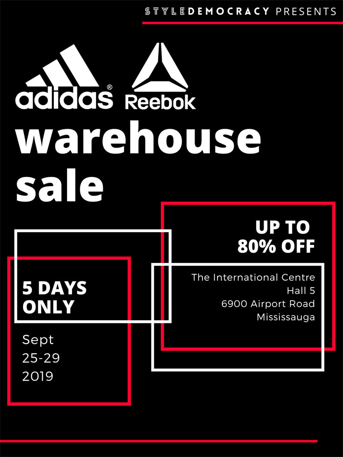 【加国生活网】喜欢Adidas 和 Reebok 的粉们注意了!Styledemocracy将从2019年9月25日至9月29日举行Adidas & Reebok Warehouse Sale,届时这两个运动品牌的所有男女及儿童款多的服装、鞋帽、配饰全部Up to 80% Off 促销。