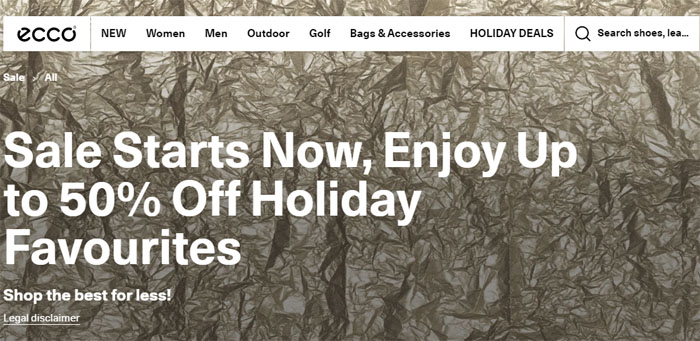 加拿大ECCO鞋店也提前开始Boxing Week促销了,目前推出的促销信息是Up to 50% Off,更多打折信息请到官网查询:https://ca.ecco.com/sale/all