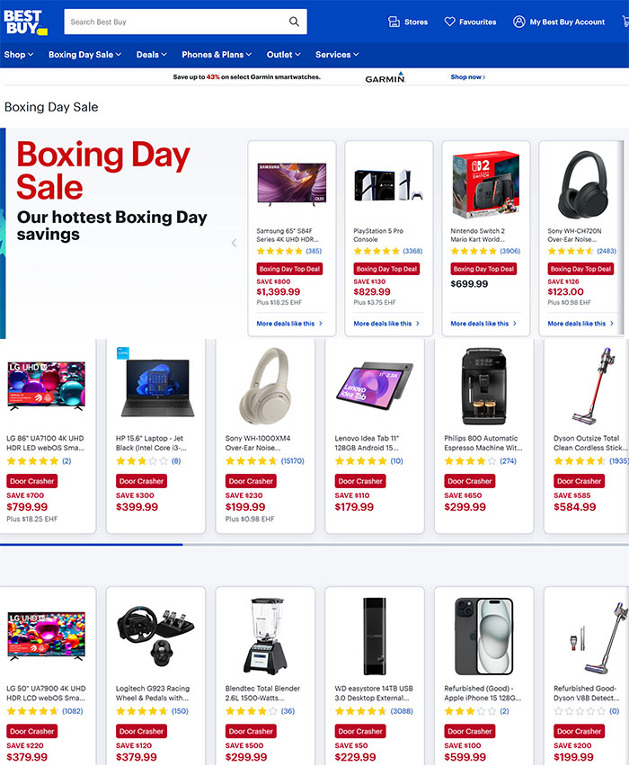 Best Buy 在boxing day当天有许多吸引人的Deal,比如Samsung 65" S84F Series 4K UHD HDR OLED Tizen Smart TV 优惠$800至$1399.99,估计会抢破头。还有许多Deal,大家可以去官网查询:https://www.bestbuy.ca/en-ca/collection/boxing-day-sale/414523