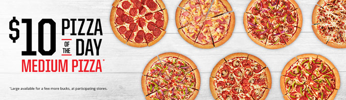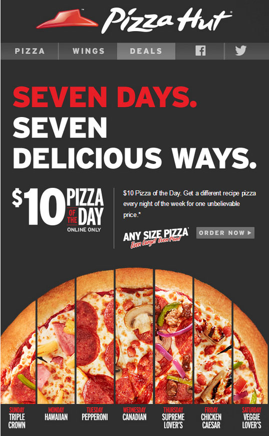 PizzaHut网上订中号Pizza均$10 每周7天不同味道