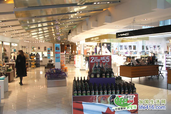 免税店里的东西挺全,从各种名牌箱包到名牌化妆品应有尽有免税店里的东西挺全,从各种名牌箱包到名牌化妆品应有尽有其中一个免税店门口有两个代表加拿大的“动物”守着大门:加拿大麋鹿和土拨鼠。这片登机大厅里有一个回音壁的建筑,从外观看,创意相当新颖。