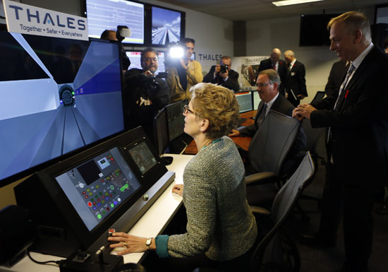 【加国生活网】安省省长韦恩于2014年11月10日一早探访交通系统研发制造公司Thales Canada,与公司负责人一起庆祝赢得来自世界各地的庞大合约,包括来自上海的地下铁路系统。