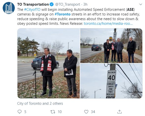多伦多市议会已批准使用高速摄影机来帮助执行道路规则并确保居民安全,安大略省政府也批准了有关法规,允许各市政府在2019年12月实施自动速度执行程序。该法规在批准后不久,ASE摄像机便安装在了50个地点。根据省级法规,罚款原定于4月份开始,但由于新冠疫情而推迟了。据悉,仅在该法规暂时中止之前的2月和3月,运输部工作人员就已向司机发出了25,000多封警告信。